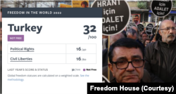 Avrupa bölgesi içinde değerlendirilen Türkiye, geçen yıl olduğu gibi gibi bu yıl da “Özgür Olmayan Ülkeler” kategorisinde yer aldı. Türkiye'nin özgürlük puanlaması geçen yıla göre değişmeyerek, 32'de kaldı.
