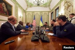 Temsilciler Meclisi Başkanı Nancy Pelosi bir grup Kongre üyesiyle birlikte Ukrayna’nın başkenti Kiev’de Devlet Başkanı Zelenski’yle görüştü.
