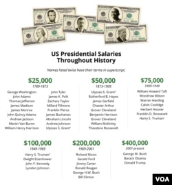 Başkan Harry Truman 1949’da 100 bin dolar almaya başladı. Richard Nixon ise 1969’da 200 bin dolar alan ilk başkan oldu. 2001’de Başkan George W. Bush ise 400 bin dolar almaya başladı.