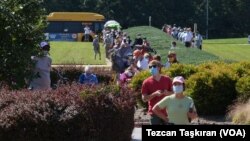 Fairfax ilçesi’nde bulunan yerel hükümet binasının önündeki uzun kuyruğu öğle saatlerinde ziyaret ediyoruz. Görevliler, sabah 8’de başlayan kuyruğun, akşam 4:30’a kadar hiç azalmadığını söylüyor. Kalabalığı görüp başka gün gelmeye karar verenler, yine aynı manzarayla karşılaşınca bu kez kalmaya karar verdiklerini anlatıyor.