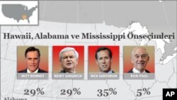 Ancak en son Alabama ve Mississippi eyaletlerinde yapılan önseçimlerin ikisini Romney’in rakibi eski Pennsylvania senatörü Rick Santorum önde bitirdi. Eski Temsilciler Meclisi Başkanı New Gingrich de yarıştan çekilmemeye kararlı görünüyor: “Yarıştan çekilmiyoruz çünkü genel seçimleri ılımlı bir adayın kazanmasının imkansız olduğunu düşünüyoruz.”