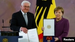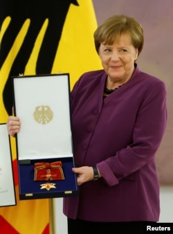 Eski Almanya Başbakanı Angela Merkel, ülkenin en yüksek dereceli nişanı olan "Federal Almanya Cumhuriyeti Büyük Liyakat Nişanı" ile onurlandırıldı. Daha önce sadece Almanya’nın ilk başbakanı Konrad Adenauer ve 1982-1998 yıllarında başbakanlık yapan Helmut Kohl’e verilen ödülü, Merkel kendi hükümetlerinde, 2005-2009 ve 2013-2017 yılların arasında Dışişleri Bakanı olarak görev yapan Cumhurbaşkanı Frank-Walter Steinmeier’den aldı.
