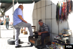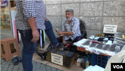 VOA Türkçe’nin sorularını yanıtlayan ayakkabı boyacısı Şahin Mingan mesleğin durumunu şöyle anlattı: “21 senedir bu duvarın dibindeyim. Boya yapıyorum, tamirat işleri yapıyorum. Şükür Allah’a bu iş ne doyurur ne aç bırakır. Evimin bir mutfak masrafı çıkıyor. Daha başka türlüydü geçmişte. Herkes şu anda spor ayakkabı giyiyor, normal kundura ayakkabı şu anda yok. Mesela eskiden biz üç liraya beş liraya boyuyorduk. Şimdi 10-15 lira diyoruz, adam çekip gidiyor. ‘Alırım boya, ben kendim boyarım evde’ diyor. Eskiden burada 15-20 çift ayakkabı bir sıralıyordum, akşama kadar zor bitiriyordum.”
