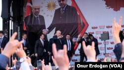Bahçeli Mersin’de, yıkılan ve yerine "Millet Bahçesi” yapılacağı açıklanan Tevfik Sırrı Gür Stadı’nın yanındaki alanda düzenlenen mitingde konuştu. Mitinge, MHP belediye başkanı adayları ve milletvekilleriyle birlikte AK Parti adayları ve milletvekilleri de katıldı.