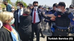Baro başkanlarına çevik kuvvet ekipleri müdahale etti. Baro yöneticisi avukatlarla çevik kuvvet ekipleri arasında arbede yaşandı.