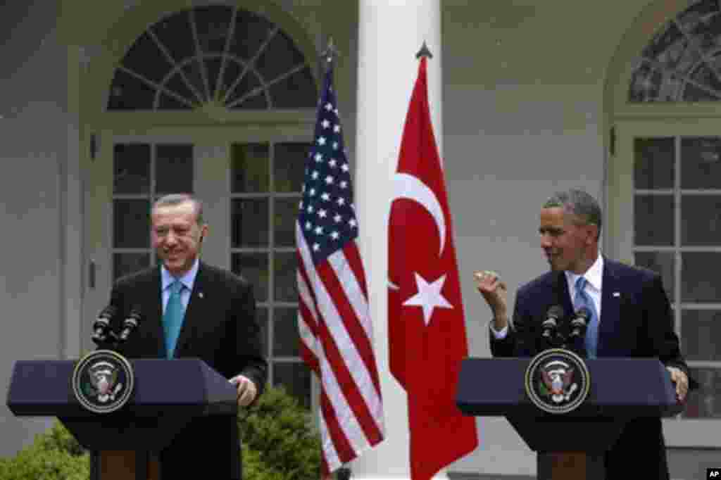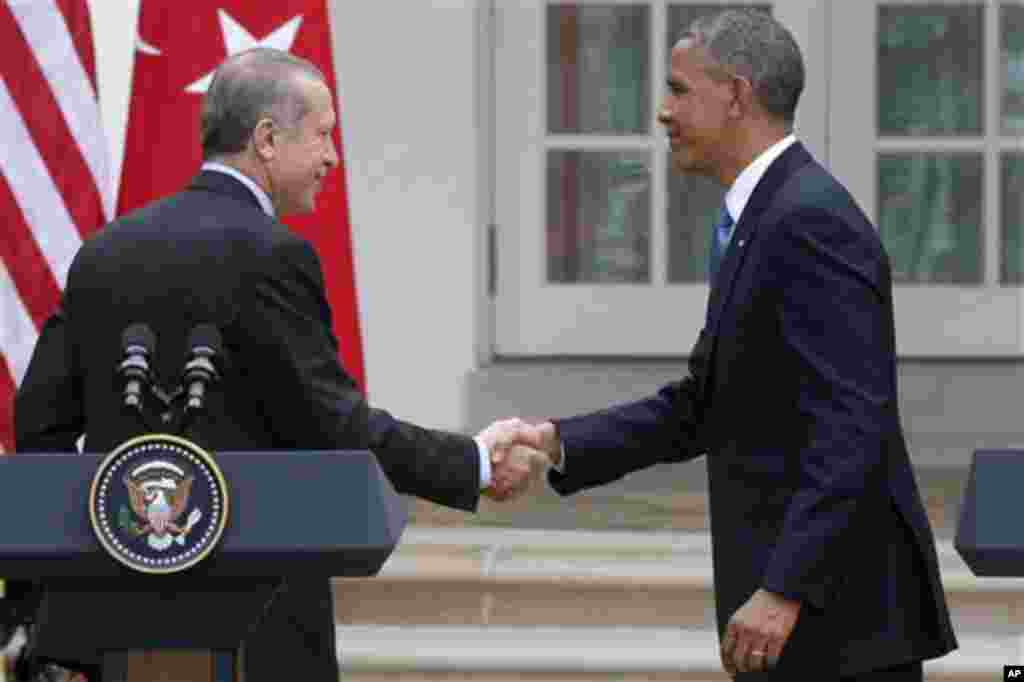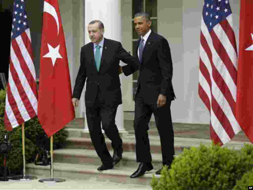 Başkan Barack Obama ve Başbakan Recep Tayyip Erdoğan'ın Beyaz Saray görüşmesi ve Rose Garden'daki (Gül Bahçesi) basın toplantısından görüntüler. Basın toplantısı zaman zaman yağmurdan nasibini aldı.