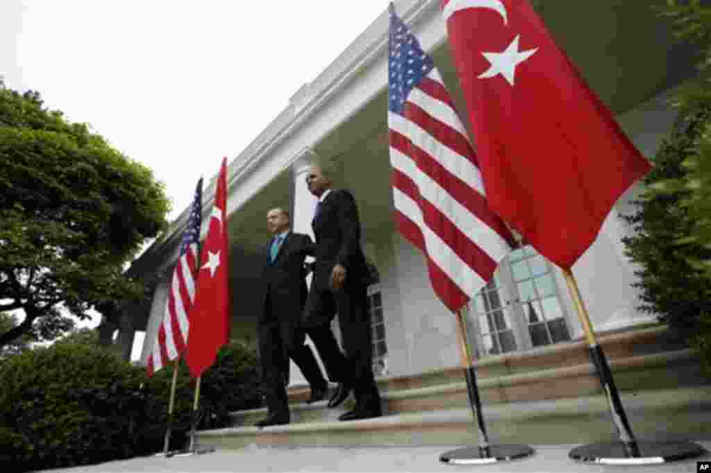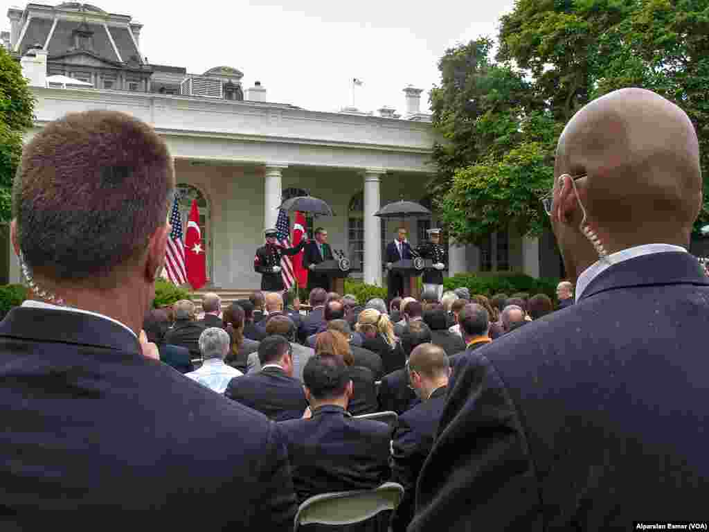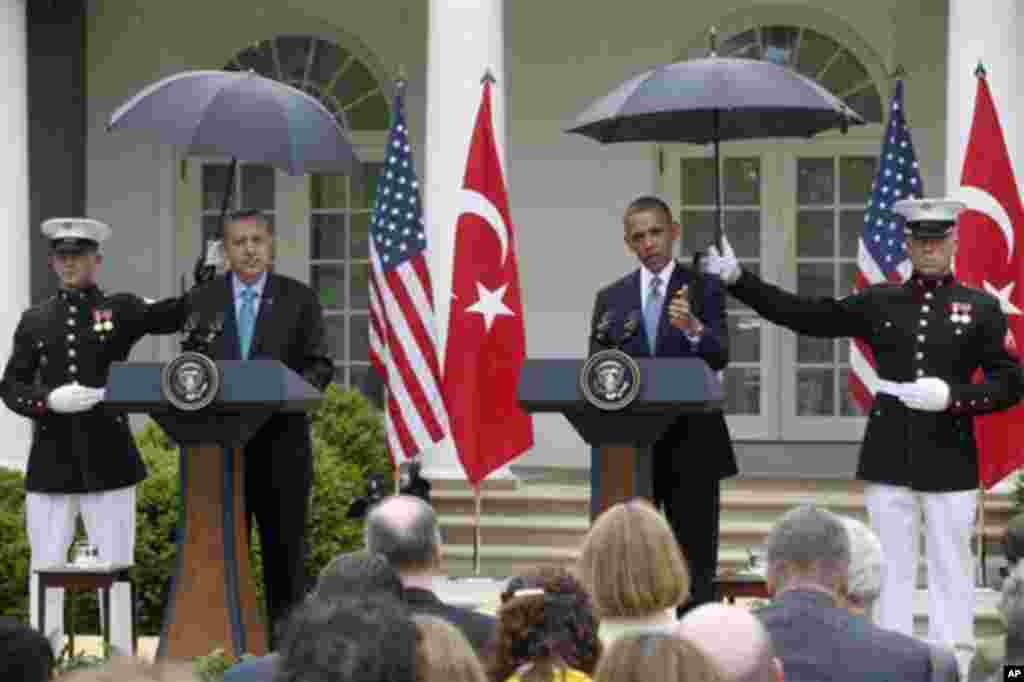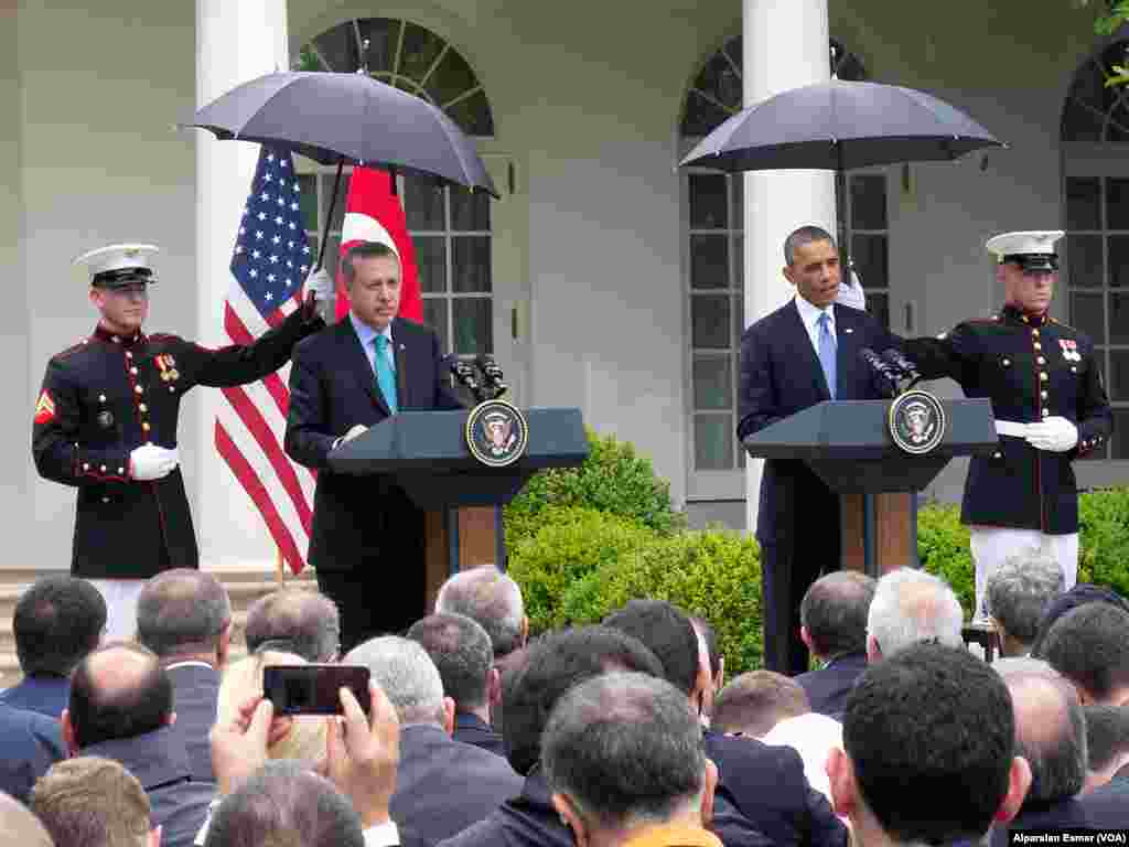 Başkan Barack Obama ve Başbakan Recep Tayyip Erdoğan'ın Beyaz Saray görüşmesi ve Rose Garden'daki (Gül Bahçesi) basın toplantısından görüntüler. Basın toplantısı zaman zaman yağmurdan nasibini aldı.