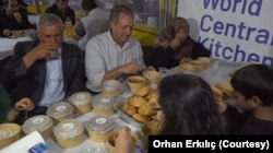Büyükelçi Jeff Flake, konuşmalarının ardından düzenlenen iftar çadırında oruç açan bir aileyle birlikte yemek yedi.
