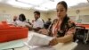 Oy zarfının seçim merkezine ulaşmasının ardından yetkililer isim ve adres bilgilerinin seçmen kaydındakilerle aynı olup olmadığını kontrol ediyor.
