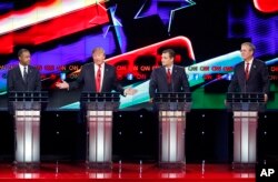 Cumhuriyetçi adayların sayısının fazlalığı nedeniyle ilk tartışma, en son kamuoyu yoklamalarında yüzde 3,5'in altında kalan eski Pennsylvania Senatörü Rick Santorum, Güney Carolina Senatörü Lindsey Graham, eski Arkansas Valisi Mike Huckabee ve eski New York eyaleti valisi George Pataki arasındaydı.