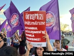 ‘‘Hukuksuz kararı tanımıyoruz, İstanbul Sözleşmesi’nden vazgeçmiyoruz’’ yazılı pankartın arkasında toplanan kadınlar, ‘‘öfkemizi örgütlediğimizde İstanbul Sözleşmesi’ni mumla ararsınız’’, ‘‘yasalar sokakta yazılır’’, ‘‘asla yalnız yürümeyeceksin’’ yazılı pankartlar taşıdılar.