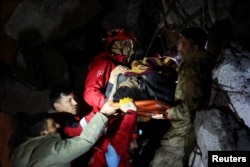 Bölgede yıkılan bazı evlerin enkazından da mahsur kalanların sesleri duyulabiliyor.