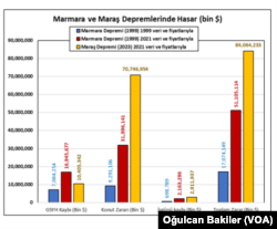 Rapora göre Marmara Depremi’nde can kaybı 18 bin 373 kişi, mali hasar 1999 dolar verisiyle 17,1 milyar dolardı.