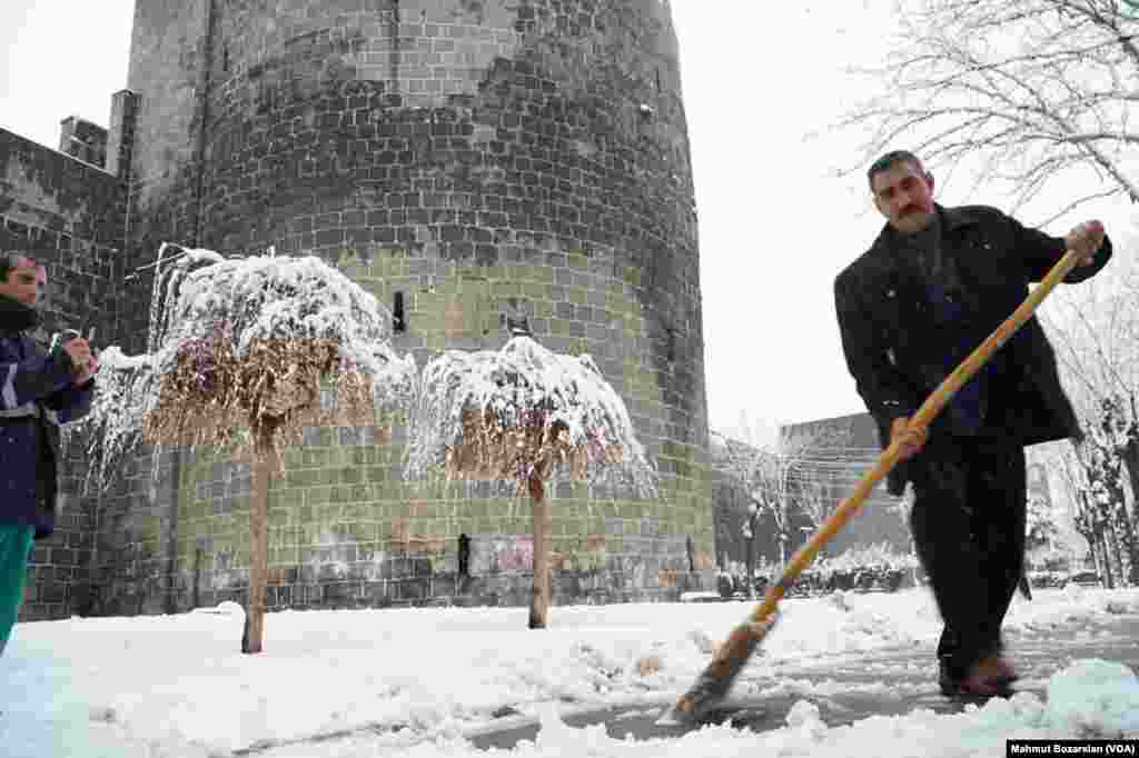 Yıllardır kar yağmayan ya da çok az yağan Diyarbakır’da yılın ilk karı bugün yağdı. Sabaha karşı başlayan kar yağışı öğleye doğru şiddetini arttırdı. Kentin cadde ve sokaklara beyaza bürünürken, karın keyfini en çok, çocuklar ve fotoğraf meraklıları çıkardı. Öğle saatlerine doğru, #kar kalınlığı 10 santimetreye çıktı. Bunu fırsat bilen çocuklar soluğu parklarda aldı. Fotoğraf meraklıları da en iyi kareleri yakalamak için, kentin dört bir yanına dağıldı. Öte yandan, pandemi nedeniyle zaten iş yapamayan esnaflar, karla birlikte kalan müşterilerini de kaybetme korkusu yaşadı. Bu nedenle esnaf, sabahın erken saatlerinden itibaren kaldırımlardaki karları temizlemeye başladı. Bir süre sonra esnafa belediye işçileri de katıldı ve özellikle parklardaki, yürüyüş yollarını kardan temizledi.