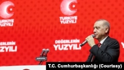Erdoğan, Cumhuriyet’in ikinci yüzyılı hakkındaki hedeflerine ilişkinse “Gelin, Türkiye Yüzyılı’nı yeni bir milli mutabakat zemini haline dönüştürelim. Gelin, Türkiye Yüzyılında demokrasimizi, katılımcı demokratik bir Cumhuriyet kimliğiyle taçlandıralım. Gelin, Türkiye Yüzyılı’nda ülkemizi, bir asırdır enerjimizi yiyip tüketen her türlü taassuptan arındırıp, siyasetin eksenini emek ve eser üzerine yeniden kuralım. Gelin, Türkiye Yüzyılı’nda ülkemizdeki özgürlüklerin çerçevesini, pozitif özgürlük anlayışıyla tekrar çizelim. Gelin, Türkiye Yüzyılı’nda tam fırsat eşitliği ve hakkaniyet temelinde bir sosyal adalet anlayışını birlikte tesis edelim. Gelin, Türkiye Yüzyılı’nda asırlardır gerilemeyle, duraklamayla, yıkılmayla tarif edilen ülkemizin yükseliş dönemini başlatalım. Gelin, Türkiye Yüzyılı’nda ülkemizi herkesin kendi yankı odasından çıkıp birbirini dinlediği, birbirini anladığı, birbirine saygı duyduğu bir yer haline getirelim. Gelin, Türkiye Yüzyılı’nı fark edilen, fark atan, farkını hissettiren ve farklılıklarıyla zenginleşen bir ülke haline gelişimizin sembolü yapalım. Gelin, Türkiye Yüzyılı’nda erdem ve adalet devletini zirveye çıkartalım. Gelin, Türkiye Yüzyılı’nda ülkemizi küresel çarkın bir dişlisi olmak yerine lokomotifi haline dönüştürelim. Gelin, Türkiye Yüzyılı’nı milli ve yerli değerlerle evrenseli kuşattığımız, sözümüzü çağa söylediğimiz bir dönem haline getirelim” dedi.