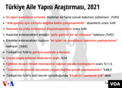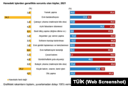 VOA Türkçe’ye değerlendirmede bulunan Orta Doğu Teknik Üniversitesi (ODTÜ) Sosyoloji bölümü öğretim üyesi Prof. Dr. Umut Beşpınar, Türkiye’deki toplumsal cinsiyete dair algıların ev içerisinde eşitsizliğe yol açtığını kaydetti: “Bunun nedeni toplumda kadını genelde ev alanıyla, özel yaşamla sınırlı gören, erkeği de kamusal yaşamla sınırlı gören yaklaşımın etkin olması ne yazık ki. Bu durum, ev işlerini paylaşmada da erkeklerin ciddi olarak bu sorumlulukları kendilerine ait görmemelerine neden oluyor. Bu bir boyutu. İkincisi, Türkiye’de kadının iş gücüne katılımı çok düşük, kadının iş gücüne katılımı OECD ülkeleri arasında Türkiye’de en düşük. Ev işlerinin büyük oranda kadının sorumluluğunda görülmesi bu durumun bir sonucu. Çünkü kadın evde her ne kadar çalışsa da ekonomik, ücretli çalışma yaşama katılamadığında evdeki sorumluluklar sadece onun sorumlulukları olarak görülüyor.” Beşpınar, devletin kadını ev işlerinden sorumlu gören bakışının ve bu yöndeki sosyal politikalarının da bu durumu ortaya çıkardığını belirtti.