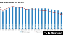 2021 yılında evliliklerin artmasına karşın Türkiye’de 2008 yılından bu yana evlenen çiftlerin sayısı düşüş eğiliminde. VOA Türkçe’ye değerlendirmede bulunan Boğaziçi Üniversitesi öğretim üyesi sosyolog Dr. Feyza Akınerdem, bu düşüşün toplum yapısını değiştirecek kadar dramatik olmadığını kaydetti. Ancak Akınerdem, gençler arasında evliliğinin geleneksel anlamının da değiştiği görüşünde: “Gençlerin hayata bakışı, toplumsal ilişkilere bakışı, yapılara bakışı, geleneklere bakışı değişiyor. Gençler açısından evlilik ve evlenme geleneksel olarak görülüyor. Evlenmenin ya da bir eş sahibi olmanın, kendisi olmasa bile ritüelleri, süreçleri, evlenmenin yani bu toplumumuzda yaygın olan görücü usulü ya da çöpçatan usulü evliliklere artık gençler o kadar sıcak bakmıyorlar. Televizyonda, Netflix'te izlediğimiz 'kalbinin peşinden gitme' duygusu ağır basıyor. Diğer taraftan gençler sosyoekonomik açıdan geleceğe çok güvenli bakmıyorlar. Eğitim yaşı, eğitim düzeyi yükseliyor, okullaşma oranı artıyor ve insanlar okuldan daha geç çıkıyor diyoruz ama bütün bunlar gençlere, genç insanlara hayatlarının daha iyi olacağına dair bir umut da vermiyor. O umudu vermediği için de sorumluluk almak, evlenmek, çocuk sahibi olmak tabii ki genç insanlar için daha zor oluyor.”