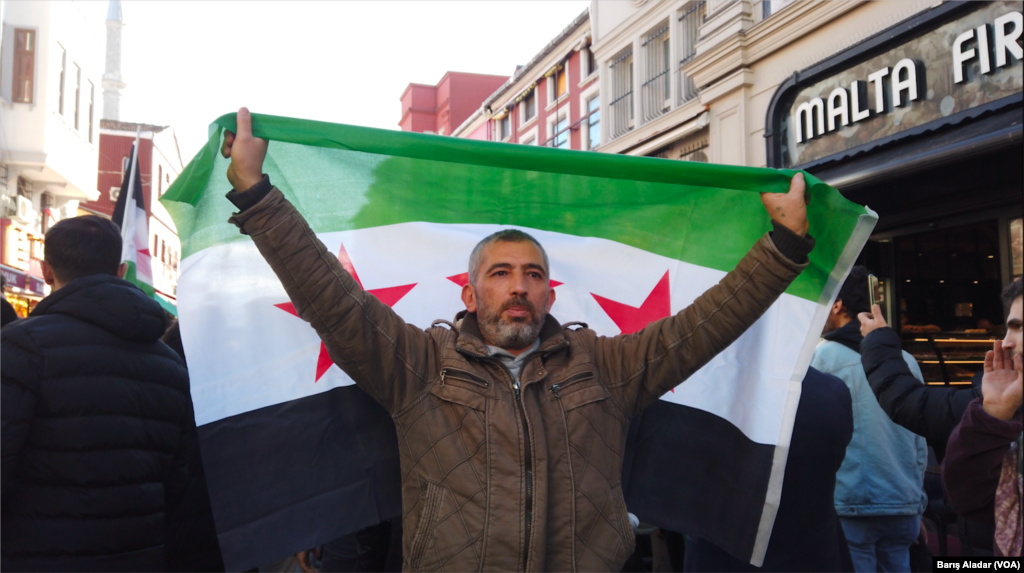 Bu sabah Teşvikiye’de bulunan Suriye Başkonsolosluğu’nda asılı Suriye bayrağını indiren rejim muhalifleri gün boyu Fatih Camisi ve Saraçhane Meydanı’nda Heyet Tahrir el Şam (HTŞ) liderliğindeki paramiliter güçlerle Suriye Milli Ordusu’nun zaferini kutladı.