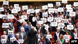 Meclis Genel Kuurlu'nda yapılan görüşmelerde kürsüye çıkan önerge sahiplerinin hedefinde Cumhurbaşkanı Emmanuel Macron ve hükümet vardı.