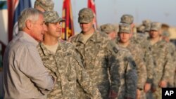 Pentagon Sözcüsü Koramiral John Kirby’nin verdiği bilgiye göre, görevi Ashton Carter’a devretmeye hazırlanan Savunma Bakanı Chuck Hagel, bölgedeki Amerikan birliklerine de veda etti.