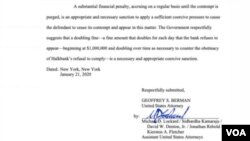 Başsavcı Geoffrey Berman imzasıyla mahkemeye yapılan başvuruda, Halkbank’ın katılımı reddetmesi halinde önerilen bir milyon dolarlık cezanın katlamalı olarak uygulanması talep ediliyor.