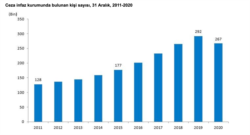 Türkiye’de ceza infaz kurumlarında bulunan kişi sayısı 31 Aralık 2020 itibariyle bir önceki yıla göre yüzde 8,5 gerileyerek 266 bin 831'e düştü. Türkiye İstatistik Kurumu (TÜİK) 2020 yılına ait ceza infaz kurumu istatistiklerini açıkladı. TÜİK verilerine göre 2011’den bu yana her yıl artan tutuklu ve hükümlülerin sayısı ilk kez 2020 yılında azaldı. Corona virüsü salgını gerekçesiyle açık cezaevinde kalan denetimli serbestlik kapsamındaki hükümlülerin izne çıkarılması ve infaz paketinde yapılan son düzenlemeyle 90 bin kişiye tahliye yolu açılması bunda etkili oldu.