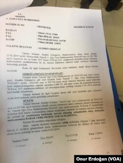 Erdoğan’ın adaylığı ilk olarak Akdeniz İlçe Seçim Kurulu’nda reddedildi. Erdoğan’ın ifadesine göre kurul adli sicil arşiv kaydından dolayı seçilmeye engel bir durumun olup olmadığına dair belge istedi. Erdoğan, talebe istinaden Erdoğan Mersin 3. Ağır Ceza Mahkemesi’nden durum tespiti istedi. Mahkeme Erdoğan’ın, 2017’de Tunceli 1. Ağır Ceza Mahkemesi’nden aldığı “terör örgütü propagandası yapma” cezasının, seçilme hakkını ortadan kaldırmadığına işaret eden bir yazı gönderdi. Mahkeme şu ifadeyi kullandı: “Talepte bulunan Aleddin Erdoğan, Tunceli ağır ceza mahkemesine ait 2016/185 esas ve 2017/66 sayılı kararına yönelik memnu haklarının iadesi yönünde talepte bulunmuş ise de, Tunceli Ağır Ceza Mahkemesinin 2016/185 esas sayılı kararında TCK’nın 53. maddesinde belirtilen belli hakları kullanmaktan yoksun bırakılması yönünde bir kararın mevcut olmadığı, bu nedenle de yasaklanmış haklarının mevcut olmadığı anlaşılmakta, talep hakkında mahkememizce Karar verilmesine yer olmadığına oy birliğiyle karar verildi.”