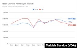 Ancak birçok sektörde olduğu gibi hazır giyim ve konfeksiyon ihracatı da yılın ikinci yarısından itibaren düşüşe girdi. Aralık 2022'de, yüzde 5,5 azalışla 1,7 milyar dolarlık ihracatla yılı kapatan sektör, bu durumu 2023 için alarm zili olarak değerlendiriyor. VOA Türkçe’nin sorularını yanıtlayan Ege Giyim Sanayicileri Derneği (EGSD) Başkanı Hayati Ertuğrul, “2022’nin ilk altı ayında sektörün ihracatında yüzde 15-20 arası bir artış kaydettik. Fakat son altı ayda ve son çeyrekte, ihracatla ilgili rakamları aşağı doğru indirdik. Bu şekilde hızlı gitseydi, belki biz ihracatımızı 22-23 milyar dolarlara çıkarabilirdik. Tekstil hammaddeleri ihracatımız da 10 milyar dolar civarında kaldı. Yani hazır giyim, konfeksiyon ve tekstil hammaddeleri ihracatımız toplamda 30 milyar dolar üzerinde bir rakam kaydetti” dedi.