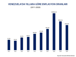 Venezuela Merkez Bankası (BCV) verilerine göre geçen yılı yüzde 3 bine yakın (%2.959,8) enflasyonla kapatan Venezuela, dünyanın en zengin petrol rezervlerine sahip ülkesi olsa da 21. yüzyılın en ağır ekonomik krizlerinden birini yaşıyor.