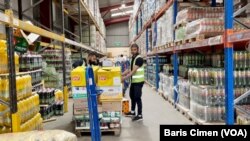 Tırların biri yanaşıp diğeri ayrılırken gelen malları bir saat içinde forkliftlerle raflara dizen, onların bilgisayar girişlerini yapan ve ürün bekleyen süpermarketlere çıkışını sağlayan 300 çalışan da Türk.