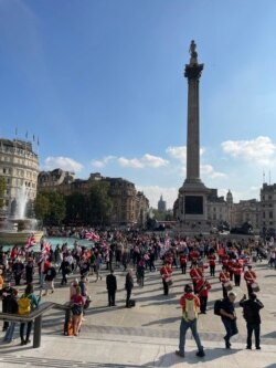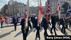 İngiltere'nin başkenti Londra’da aralarında bazı eski askerlerin de bulunduğu bir grup, bando eşliğinde İngiltere’nin Brüksel’le vardığı Brexit anlaşmasının Kuzey İrlanda Protokolü'nü protesto için yürüyüş düzenledi.