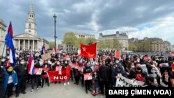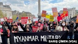 Seçilmiş hükümet lideri Aung San Suu Kyi’yi devirerek yönetime geçen askeri yönetimi protesto etmek için toplanan yüzlerce Myanmarlı önce Londra’daki Birleşmiş Milletler binasının önünde sonra da Trafalgar meydanında toplanarak seslerini duyurmaya çalıştı.
