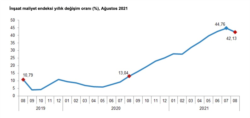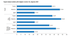 Salgından en çok etkilenen sektörlerin başında gelen inşaat sektöründe maliyetler zirveden inmiyor. Türkiye İstatistik Kurumu’nun (TÜİK) açıkladığı verilere göre, inşaat maliyet endeksi Ağustos ayında yıllık bazda yüzde 42,13 artışla rekor tazeledi. Endeks, 2021 yılı Ağustos ayında bir önceki aya göre yüzde 0,93 arttı. Maliyetler içinde en büyük payı ise inşaat malzemeleri oluşturuyor. Bir önceki yılın aynı ayına göre malzeme endeksi yüzde 51,94, işçilik endeksi yüzde 21,54 arttı.