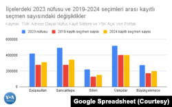 2023 itibariyle nüfusun 517 bin 348 olduğu ilçede, 2019 seçimlerine kıyasla kayıtlı seçmen sayısında azalma görülüyor.