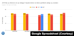 İki partinin arasındaki yüzde 2,81 oy farkı, 2 bin 807 oya denk.