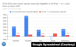 2019’dan bu yana kayıtlı seçmen sayısı 24 bin 286 seçmen ile artış gösterdi.