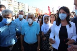 Miting öncesinde HDP Eş Genel Başkanları Mithat Sancar ve Pervin Buldan, İzmir Büyükşehir Belediye Başkanı Tunç Soyer ve CHP İzmir İl Başkanı Deniz Yücel’le sohbet etti.