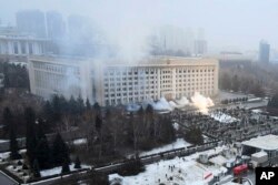 Yardım çağrısı yapan Cumhurbaşkanı Kasım Cömert Tokayev, olayların arkasında yabancı güçlerin ve eğitimli teröristlerin olduğunu öne sürdü. Tokayev, devlet binalarını basan ve silahlara el koyanların bu kişiler olduğunu söyledi.