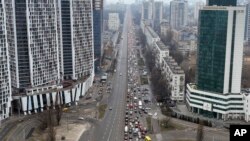 "Kiev'in çıkış noktalarında trafik yoğun"