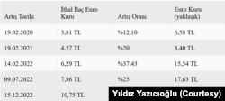 Koca, “İlaç bulunamaması probleminin çözümü için ilk adım Sayın Cumhurbaşkanımızın imzası ile atıldı. Şubat ayında yapılması gereken fiyat güncellemesi erkene çekildi. Diğer adımlar da yolda. Çözeceğiz kimse endişe etmesin” ifadesiyle sabit döviz kurunda yüzde 36,77 oranında artış yapıldığını açıkladı. Böylece Temmuz ayı itibariyle ithal ilaçlar için 1 Euro karşılığı 7,86 Türk Lirası iken 15 Aralık itibariyle 10,75 Türk Lirası’na yükseldi. Bu esnada piyasadaki döviz kuruysa yaklaşık 19,84 Türk Lirası civarında seyrediyor.