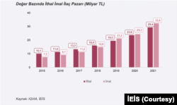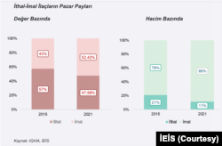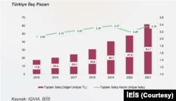 İlaç Endüstrisi İşverenler Sendikası (İEİS) verilerine göre; Türkiye ilaç pazarı, 2021 yılı sonunda değerde 61,7 milyar TL ve 2,35 milyar kutu hacminde. Bunun 29,4 milyar TL’lık kısmı ithal ilaç ilaçlar olarak kayda geçti. Geçtiğimiz yıl yurt içinde üretilen ilaçlar ise 32,4 milyar TL pazar payına sahipti.