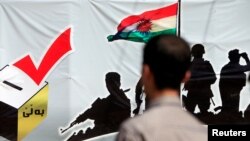 Irak Kürt Bölgesel Yönetimi’nin başkenti Erbil’de birçok seçmen üzerlerine geleneksel kıyafetlerini giydi ve ellerinde bayraklarla sandıklara gitti.