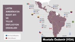 Ciddi ekonomik, sosyal ve siyasi sorunların yaşandığı Latin Amerika’da, Mart ayında Kolombiya ve Arjantin dışındaki bütün ülkelerde enflasyon oranları düştü. Mart ayında 21 Latin Amerika ülkesinin 19’undaki enflasyon oranı, Türkiye’de yüzde 2,29 olarak açıklanan resmi enflasyondan daha düşük.