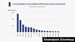 ChainAlysis verilerine göre, 2021 Temmuz ile 2022 Haziran ayları arasında 562 milyar doların üzerinde kripto para satın alınan Latin Amerika’da ilk üç sırayı Brezilya, Arjantin ve Kolombiya alıyor.