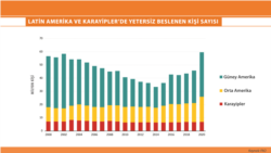 Orta ve şiddetli derecede gıda güvencesi sorunu yaşayanların toplam nüfusa oranı dünyada yüzde 30,4’ken bu oranın Latin Amerika ve Karayipler’de 2014 yılından bu yana artarak yüzde 40,9’a tırmandığı belirtiliyor.