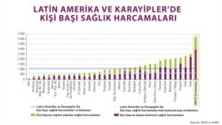 Raporda, OECD ülkelerinde kişi başı sağlık harcaması ortalamasının 4 bin doların üzerinde ve kamu harcamaları oranının yaklaşık yüzde 70 olduğu belirtilirken, Latin Amerika ve Karayipler'de kişi başı toplam sağlık harcaması 1094 dolar olarak gösteriliyor. Bölgede yalnızca Küba ve Uruguay’da kamu ve özel sağlık harcamaları toplamı kişi başına 2 bin doları aşıyor ve kamu harcamaları yüzde 70’e yaklaşıyor. Raporta Haiti, Honduras ve Venezuela’daysa kişi başı sağlık harcamasının 500 doların, kamu harcamasının da yüzde 50’nin altında olduğuna dikkat çekiliyor.
