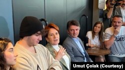 Konuşmasının ardından yakındaki bir kafede gençlerle biraraya gelen İYİ Parti Genel Başkanı Akşener gençlerle sohbet etti.