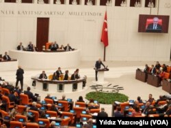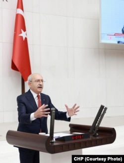 CHP Lideri Kılıçdaroğlu’nun konuşmasına Meclis teamüllerine aykırı şekilde AKP’li vekillerin sıkça laf atarak müdahale etmesine tepki amacıyla CHP Grubu ise, sonrasında AKP adına kürsüde olan Genel Başkanvekili Numan Kurtulmuş’un konuşmasına sloganlarla müdahale etti.