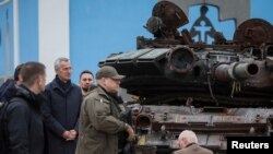 Stoltenberg ziyaretine ülkenin doğusunda Rus güçleriyle savaşırken öldürülen Ukraynalı askerlerin anısına bir çelenk koyarak ve başkentin Aziz Michael Meydanı'nda ele geçirilen Rus zırhlı araçlarını inceleyerek başladı.