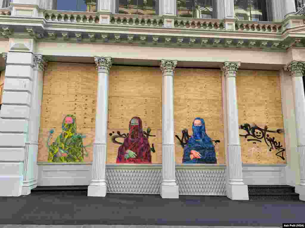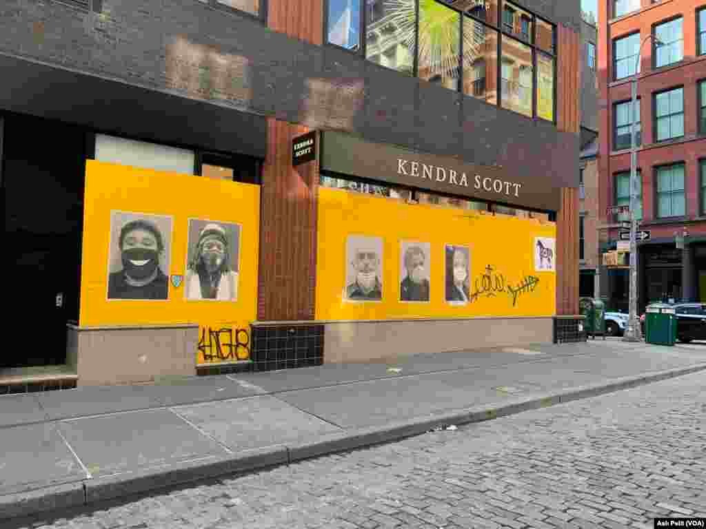 New Yorklu sanatçı Marco Santini, Bloomingdale’s mağazasının vitrinlerini sağlık çalışanlarına adarken, diğer sanatçılar New York’u terk edenleri eleştirmeyi, hatta bu eşitsizliği öne çıkarmayı amaçlayan grafitilerle SoHo’nun vitrinlerini renklendirmiş.